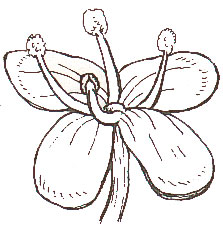 The number of anthers is four, and the "female" carpel