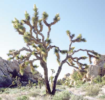 The unusual branching formations of the Joshua Tree, featuring pronounced