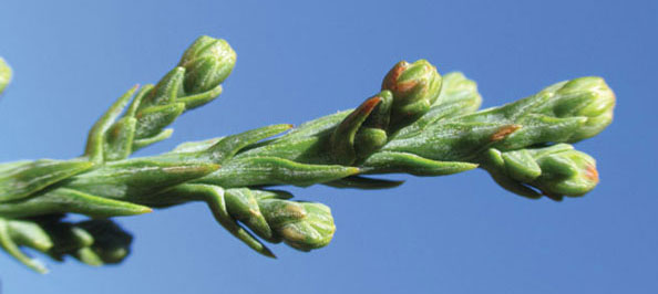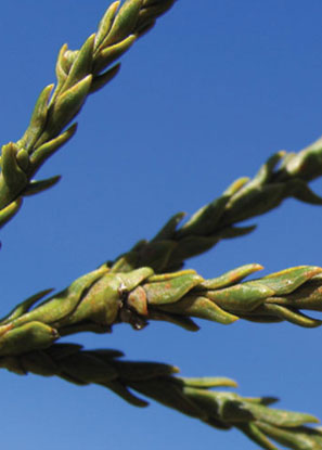 Up in the sunlit crown of the Redwood, the needles grow short and narrow, resembling the needles of cedar or juniper. These leaves make their first appearance growing out of the bark of the upper branches. The scale-like upper leaves are well suited to the hotter, drier conditions found in the forest canopy.