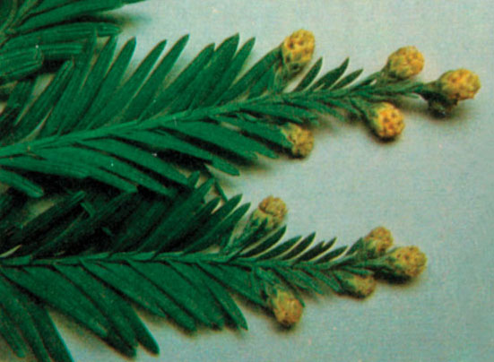 The Redwood flower essence is made from a combination of the male and female flowering twigs, thus embodying the polarity of the dark, moist world below, where only the male flowers are found, and the upper light-filled world in the forest canopy, where we find the female, cone-producing flowers.