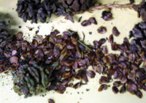Thus the Redwood relies on the updrafts to carry the pollen up to fertilize the flowers above. A mature Redwood tree can produce up to 100,000 tiny (3/4 - 1 inch / 2 cm) cones in a year, each producing around 100 seeds. Thus a single tree may produce as many as ten million seeds annually.