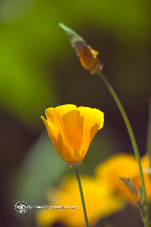 This deeper insight into the soul gesture of the California Poppy helps us to understand why it has traditionally been used as a herbal nervine to calm states of pain, restless anxiety, nervous movement and insomnia. These calming qualities help one to come to a place of rest, receptivity and inner containment. As a flower essence, these same properties of the California Poppy work not only in the body but also the soul consciousness. The California Poppy is one of the key remedies to deal with patterns of addiction, restless seeking and experimentation, along with ever-fluctuating desires. One who needs this flower essence is challenged to learn how to hold life experiences even when unpleasant: pain, anxiety or uncertainty. Gradually the soul learns ever greater inner responsibility, calm containment and self mastery. It is this chalice of gold within the heart that learns to receive and embrace all of life, so that the very light that we seek becomes that light that we radiate as a blessing to others.