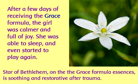 A 33-year-old women arrived at the shelter, a victim of both physical and sexual abuse. In the intake interview, she could not make eye contact, staring at the ceiling, seemingly lost and disheveled. She could not express herself coherently and was unable to describe her emotions, or what had happened to her. She had no plans or sense for her future. This woman was given Post-Trauma Stabilizer and Grace formulas. After two weeks of treatment, her physical appearance changed. She could make eye contact and talk about what happened. She was able to cry, express emotions, and have ideas about a plan for her new life. In her body image, she demonstrated signs of renewed self-care. She was wearing a brightly colored dress again. Her hair was neatly groomed. She had returned to being “herself.” Case example: An 8-year-old girl recovers from sexual trauma. An 8-year girl came with her mother. Both had been victims of rape by the girl’s father. The abuse of the mother began when she was only an adolescent. The mother and child lived in terror, enduring continual sexual violence and many forms of psychological and physical aggression. The girl was full of sadness and anxiety, with a vacant look in her eyes, as though her soul was far removed from her body. Her mother reported that her daughter was unable to play or express any happiness. After a few days of receiving the Grace formula, the girl was calmer and full of joy. As she recovered further, she was able to sleep more soundly, and even started to play again.