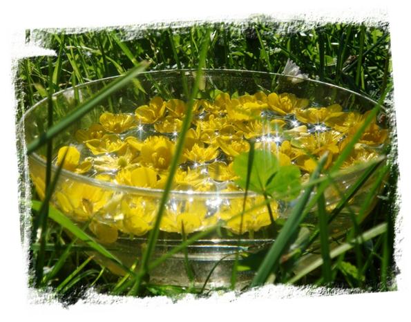 The bowl is then left in the sunshine for few hours or until the petals begin to fade.