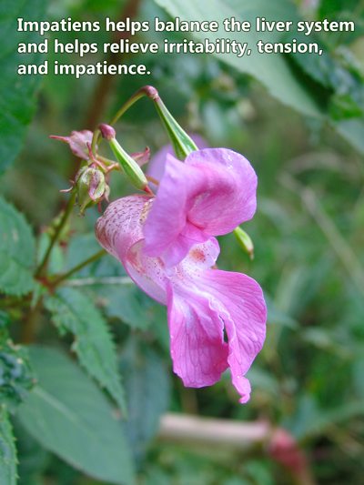 Dr. Miller utilizes flower essences in his practice for people and children with patterns he clearly can identify with particular essences. He also uses them with people who ask specifically about a flower essence consultation. When he describes flower essences to his patients, he explains to them that people co-evolved with plants, and that each plant has an energetic signature and mood that it evokes. For example, specific flowers are used for weddings and others for funerals. They have an effect in rooms, and it makes a difference which plants are present. “There is a sense that a plant has its own qualities, signature and resonance that is deeper than cultural conditioning,” Dr. Miller comments. Correlating flower essences with aspects of Chinese medicine According to Dr. Miller, correlations between flower essences and Chinese medicine don’t necessarily apply for all of the essences. Also, some of the correlations are with more complex portions of Chinese medicine than with others. But there are a few flower essences which Dr. Miller finds that correlate between the two systems quite nicely. He was able to recognize these correlations because he has studied Chinese medicine extensively for many years. And, as he also began to study the flower essences, he started to cross study the two fields and could see the overlaps, with particular essences emerging. Impatiens works towards balancing the liver system. Dr. Miller explains, “In Chinese medicine the liver system is related to ‘get up and go,’ going out and doing things, getting things done, and acting in the world. When that gets blocked up you have a condition called liver chi stagnation. Signs of that include irritability, tension, and impatience. When the liver is flowing freely you feel like everything is going fine, you’re not stressed, there’s compassion for others, and there’s an easy temperament.”