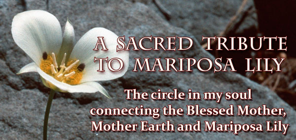 by Elly van Ekelenburg Editor’s Note: FES-certified practitioner Elly van Ekelenburg of Venray, Holland, illustrates a deeper way of understanding how flower essences can impact the soul life. The typical therapeutic model is case oriented and based on short term outcome. However, flower essences have deep archetypal potency – stimulating layers of healing that continue to impact the life biography and cannot be summarized as a single case. These various levels of soul identity are outlined in the MetaFlora approach to flower essence therapy . In the following essay, Elly explores how the archetypal healing qualities of Mariposa Lily have addressed issues involving her family of origin, her own bodily healing, her vocation as a healer and finally a deeper understanding of her spiritual identity. This article has been edited for flow of English language and summarized in some areas. In the following essay I will write about the connection I discovered between Mariposa Lily, Holy Mother Mary and Mother Earth through many years of encountering the healing archetype of the Mariposa Lily, within myself and in my clients. Family of Origin – A Devotion to the Blessed Mother My family religious background was Catholic. My parents intended our family to be good Catholics, contributing honorably to our community. As oldest of seven girls I helped with the care of those sisters who were born after me. My attitude regarding the Catholic Church centered mostly around the external rules made by the Church authorities. However, I also experienced in my family of origin a sincere devotion to the Blessed Mother Mary. As a family we learned to pray to her for help during an illness, or during any trial, including our school tests and so forth. We lit a candle in the sanctuary of the Church devoted to the Blessed Mother, or in our home at our private altar. Breaking Away from My Family When I became an adult with my own independent thinking, I had many doubts about these rituals and beliefs. The most challenging life event in my early adulthood was the loss of my boyfriend, Jan, who was killed in an accident. My parents liked my boyfriend because he played with my sisters, danced with my mother and spent much time in our home and family life. However, my parents did not know that Jan’s father was a very harsh parent and that Jan had run away from home for a period of time before we met. At the funeral, a remembrance card was distributed that divulged this information. My parents were outraged that Jan would have been disobedient to his family. In our small Catholic village this transgression seemed paramount and stood in the way of my parent’s compassionate response to me during my time of grief. In this very time when I needed the support of my parents so strongly, they abandoned me. I felt that I lost not only my boyfriend but also my parents during this time. I was so distraught that I had many suicidal thoughts. However, something prevented me from acting. Instead, I made a decision to light a candle to Blessed Mary and pray for her intercession. If my soul disposition was not able to improve, I resolved to leave the Netherlands to join my aunt who was a missionary in Indonesia. It was during this time of intense soul pain and searching that I met Jan’s friend, Hans. We formed a soul bond sharing our grief and pain about Jan’s death. Soon, we discovered a deep love for each other. Although my parents did not agree with my choice, we got married and are still to this day happy life partners. A Numinous Experience of Mariposa Lily and the Mother Archetype As my life progressed, I lost connection with Christianity, but still there was a feeling in my heart for Blessed Mary, and I would pray on occasion to her when things were difficult. When I discovered flower essence therapy, a whole new world opened to me that brought me in touch with my soul. I learned to respect Nature and began to recognize my own capacities to work as a healer with flower essences. After some years working with essences for myself and clients an invitation came from the Flower Essence Society to participate in their educational programs. I always had a longing to go to California and decided to attend the Practitioner Training. I was seeking answers to many healing questions, including my own personal struggle to become pregnant and being unable to do so. The FES program opened up my deep connection with the flowers and Mother Nature, helping me to find hidden creative forces in myself. The high point of the class came during our field trip to experience preparing a flower medicine. Richard and Patricia did not know what flower would show itself, but during the trip to the mountains a mother deer and baby crossed their path. They knew then that Mariposa Lily, the archetype of mothering and maternal healing forces, was the flower that called to be prepared.
