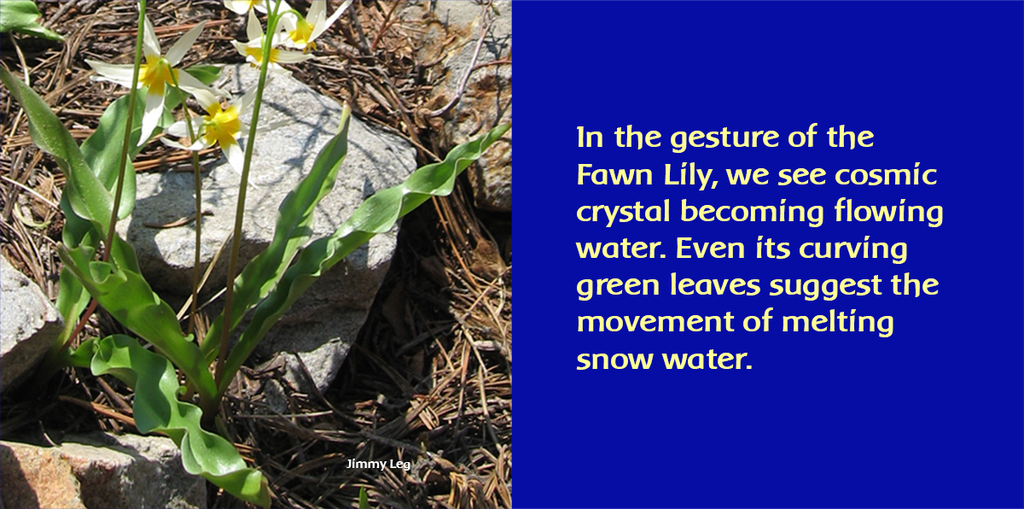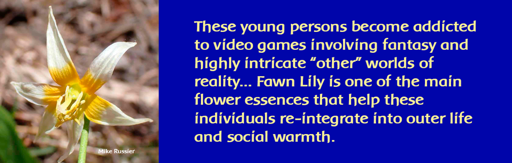For example, a 50-year-old man used this formula for over a year to help him transition from his career as a firefighter to a new profession as a bodyworker and therapist. He identified Fawn Lily as an especially important part of the formula because his father had discouraged him as an adolescent from anything “touchy-feely” believing it was not a “manly” profession. He felt that this more inward feminine part of him had remained frozen and locked up until he began to use the Grace Formula. He commented, “I felt that I had become a block of stone with no feelings, except hardness. After I used Grace for several months, I felt that my heart became a river of flowing and feeling…”