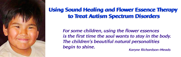 Flower essences are used initially to provide emotional support for the child as they are excreting toxins, which can have a dramatic effect on emotions and behavior. Rock Rose and Five-Flower Formula are extremely helpful for letting go of the internal fear inside the emotional body of the child, the feeling of being ‘no where safe’—even inside your own body since birth. The bodies of children diagnosed with autism are rhythmically out of sync within; they usually don’t sleep well and they don’t breathe deeply enough. These flower essences help calm the spirit so that the body can begin to entrain to synchronous music from Computerized Cognitive Brain Training (CCBT) software, which brings the body into balance, and thus heals from the inside out. As expressed by Karyne, “We can see the out-of-phase genetics and the physical issues using the software, but the flower is the door to the spirit within.” Sound therapy awakens the child. Karyne initially suggests that flower essences be used at bedtime so that stress, which is held in the cell’s memory, can be released through dreams. For more details regarding the sound therapy process, see the following links: