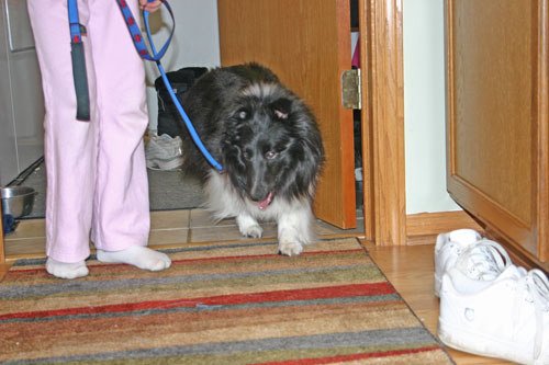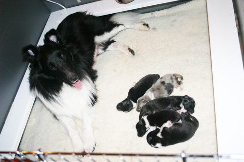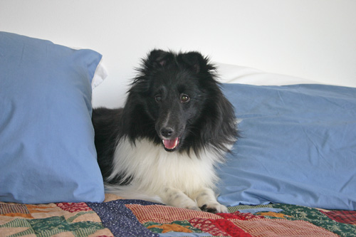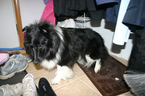 Maize is a 2 ½ year old bi-black Shetland Sheepdog. Her father is a top show dog and her mother was also a show dog. She is owned by her breeder, and has lived in a kennel for much of her life. She received human contact and attention daily from the breeder and her family members while living in the kennel. Maize was on a relatively decent quality dry dog food while living with the breeder. After she was with us for a couple of months, I switched her diet over to a balanced home made raw diet. As the breeder does not believe in over-vaccinating her dogs, Maize received the required rabies vaccine and the minimum number of other necessary vaccines. She was also on a year-round heartworm prevention. Aside from needing a bath, she was in good condition and has a nice healthy coat, good skin, and has no known health problems.