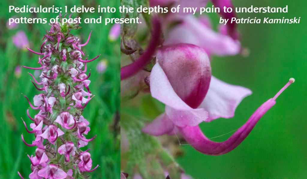 Pedicularis flower essence helps the soul to remember and to release. One who needs Pedicularis often displays anxiety along with deep sensitivity, for there is fear within the soul that one is merely repeating or revisiting past states of soul life, without the strength to clearly name the reality and to move forward from it. The following example was reported by a client who used Pedicularis for some time, either alone or in select formulas: