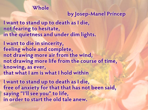 After 13 years working at a telecommunications multinational company, he decided to quit his job and devote himself fully to flower essence therapy. Josep-Manel serves as a volunteer flower essence therapist for ATAGAM (Associació Trastorns d'Ansietat, Grups d'Ajuda Mútua), whose main objective is to help people with chronic disorders such as anxiety, depression, agoraphobia, panic, social phobias and obsessions. Translated by Ricardo Mateos from the original Spanish version.